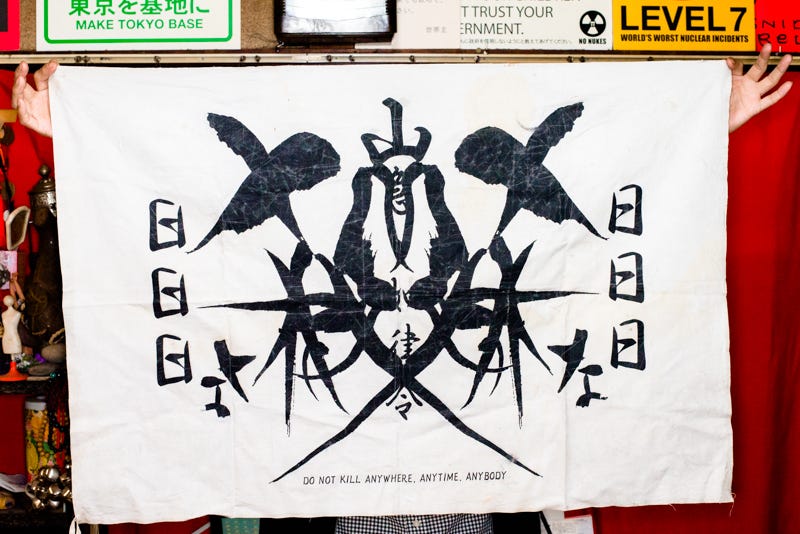Turns out he's not nearly as intimidating in person as he is on paper. Speaking with him at his west Tokyo apartment that’s part workshop, part steel truss bivouac, gave me the impression that his brand of voodoo activism owes as much to the theatrics of his Kenyan shaman as it does to the films of Carpenter and Romero that use horror as a tool for social commentary.